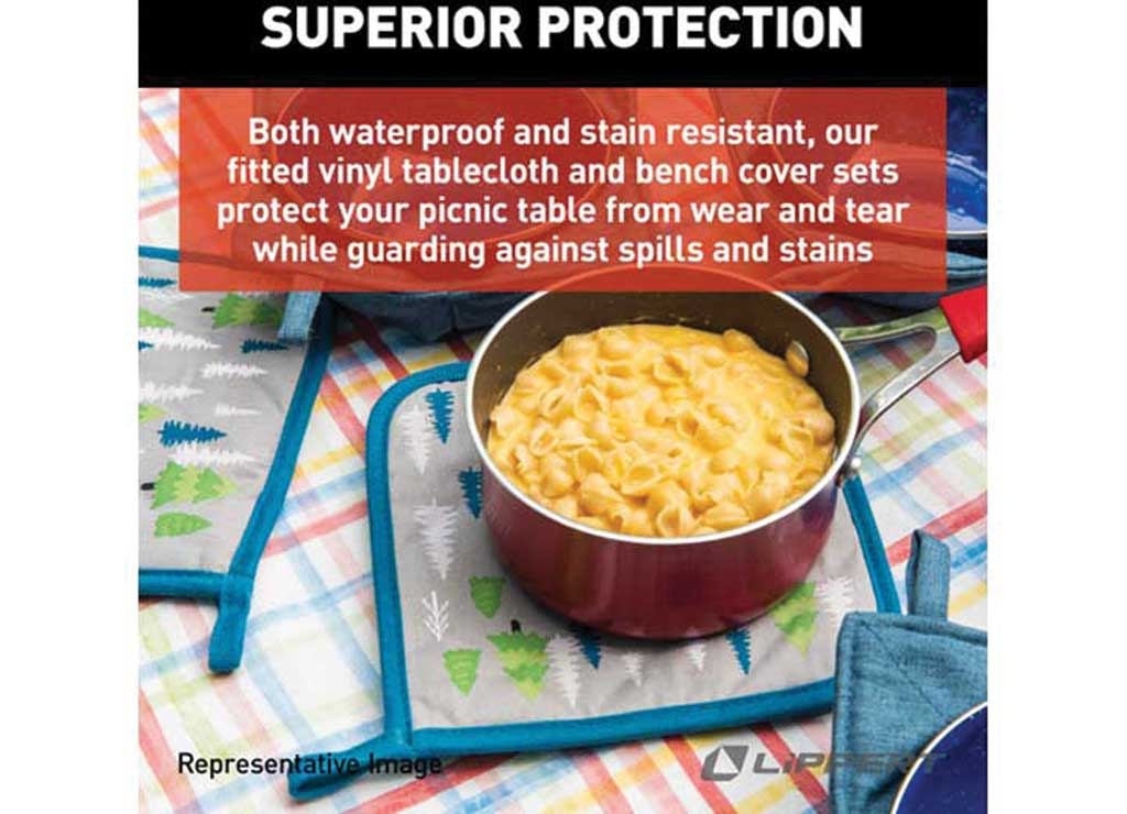 Tablecloth Fits Picnic Table 72 Inch Length x 27 Inch Width And Picnic Bench 72 Inch Length x 11 Inch Width; 78 Inch Length x 37-1/2 Inch Width And 78 Inch Length x 15-1/2 Inch Width Polyethylene Vinyl With Two Bench Covers Waterproof And Stain Resistan