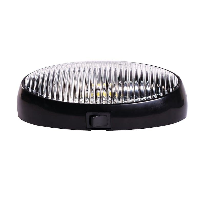 Porch Light; LED Bulb; 12 Volt; Oval; 6.2 Inch Length x 3.4 Inch Width; Clear Lens; Black Base; Single; With Switch
